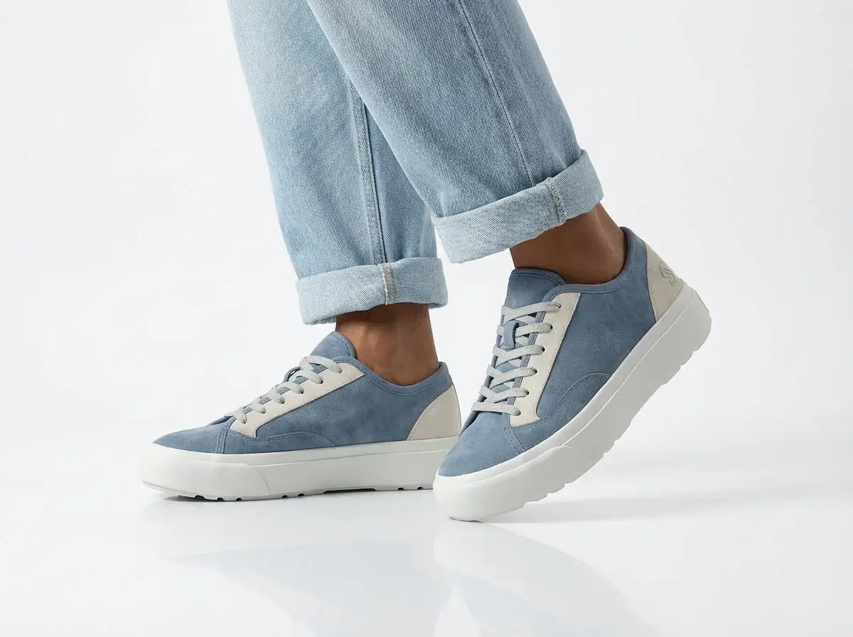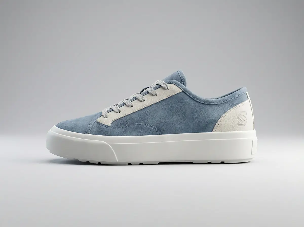 Generate a photorealistic product render of this sustainable sneaker concept with the specified materials and branding.